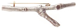 Waewaekaka, Gleichenia dicarpa, Tangle fern Brooch, 2004 Stg silver, 9ct gold W140mm x H75mm $1050.00