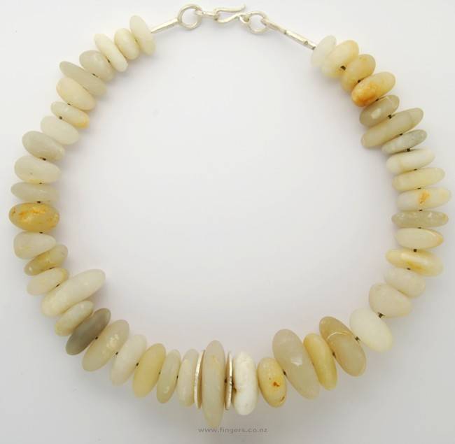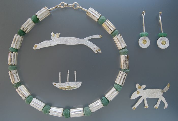 Mountain, granite beads, sterling silver, 18ct gold $370