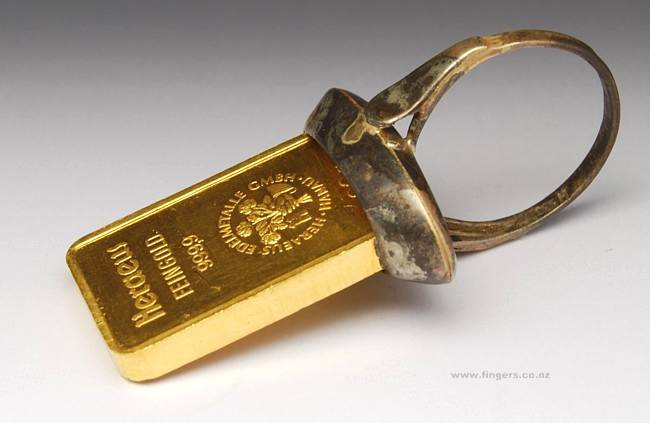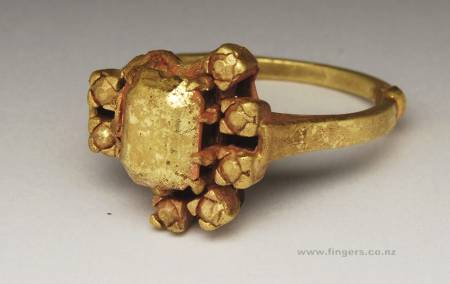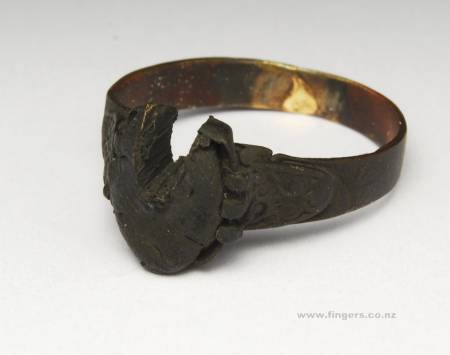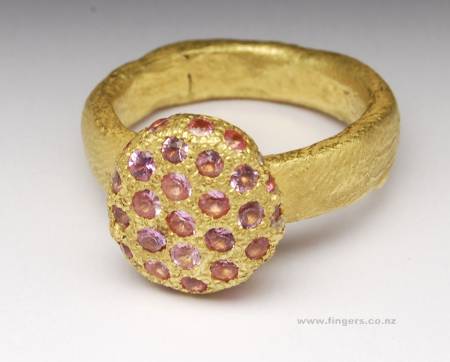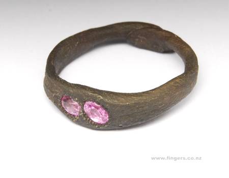 ![]() 1, Oxidised 18ct gold, pink sapphire, 2004 |