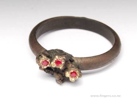 ![]() 2, Oxidised 18ct gold, rubies, 2007 |