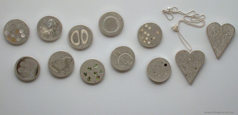11, Concrete heart necklace, $525, concrete, fine silver, sterling silver, diamond