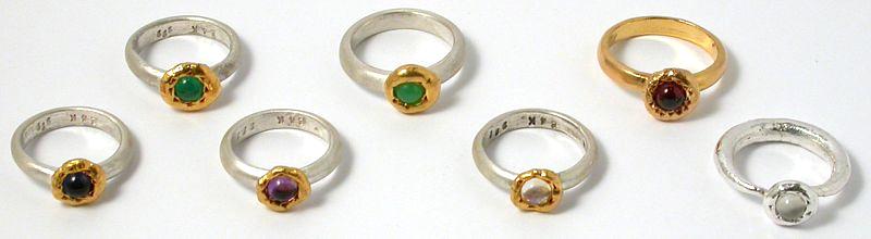 2. emerald, 24k gold+silver, size K 1/2, $625