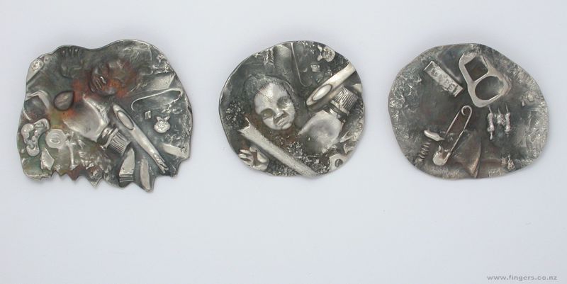 3, Tini Eyes brooch (small), $400, found cake tin, stg silver, 9ct gold