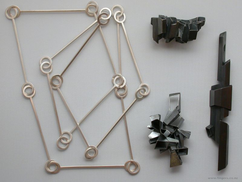 2, Web brooch, $480, oxidised stg silver