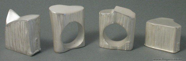 "A southerly journey past cold lands and icy structures" ![]() 1. Albatross bracelet $1100 ![]() 2. South bracelet $NFS ![]() 3. Disappointment Island bangle, $400 ![]() 4, 5, 6. Iceberg brooches, $100 each ![]() 9. Iceberg ring, $210, 7, 8. Iceberg rings, $180 each, 10. Iceberg ring, $210 ![]() Rings 10, 9, shown open. All pieces sterling silver John Edgar