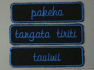 ![]() 9 x fabric name badges; white, european, new zealander, kiwi, pakeha, |