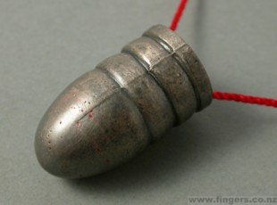"Cast from a musket ball dug up from the battlefields of the New Zealand Wars by zealous amateur historian-collectors, the pendant is silver, just right for slaying the myth of One New Zealand. Perfect for the Paakehaa who wonders why we all can't just get along, it is a piece of jewellery that neatly turns the bullet around, aiming it forward in time to the descendants of those who fired the first shots back in the 19th century. |