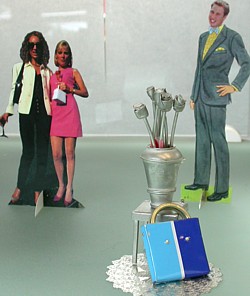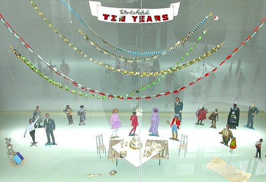 1 Handbag $25 27 People $25 ea 1 Vase $30 8 Flowers $10 ea 1 Stool $25 2 Chairs $30 ea 1 Table & cloth $40 12 Plates $10 ea 6 Bottles $10 ea 12 Cutlery $15 pr 5 Glasses $10 ea 1 Rug $10 1 Doilies $10 1 Lamp $50 5 Streamers $50 ea 8 Rings $70 ea 1 Cake & stand $270 1 Puddle $5 For the Guggenheim, $1,800 set