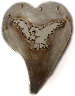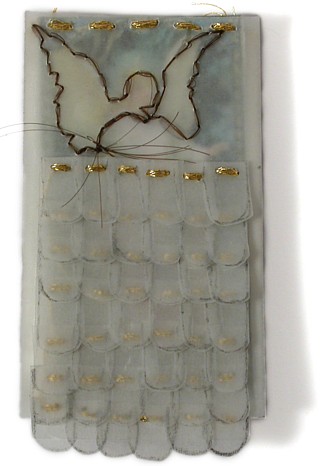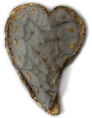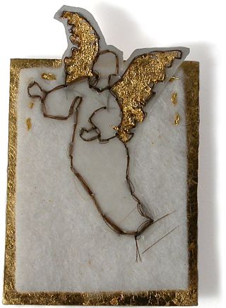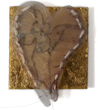 Daly’s own works possess a Catholic sensibility in terms of their beaded, embroidered and golden surfaces and use of angel, heart, skull and wing forms. In the past she has also used Catholic ex votos as the foundation for brooches.........Daly’s works speak about the possibilities of finding meaning and enchantment in the human, small and quotidian."