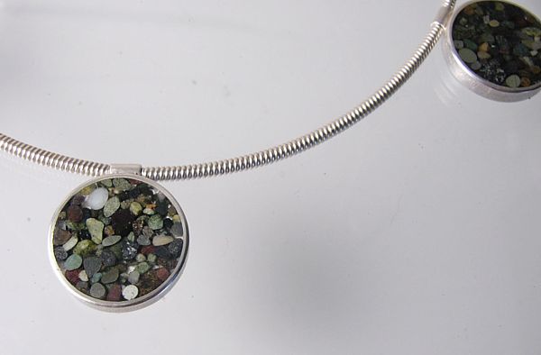 Tiny embedded pebbles, sterling. Cable: fine silver wound on st/steel.