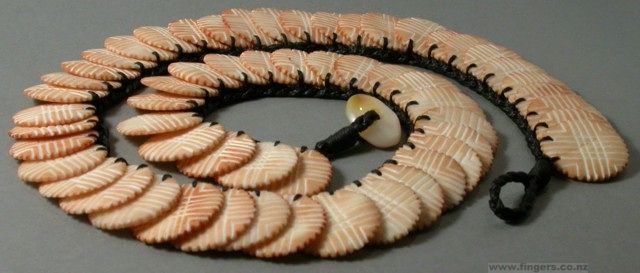 Hei Toki, Pounamu, Big Bay South Westland. $1,840 From 2018![]() Pendant. Gold lip mother of pearl, waxed nylon $840 ![]() Pendant. Mother of pearl, pounamu, whalebone, jarrah, black coral, waxed nylon $1,000 From 2017![]() 'Nga Tipa' Scallop shells, coconut fibre, nylon $900 From 2015![]()