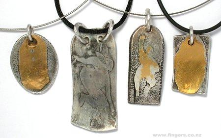4. "Running Figure on Black" pendant, 24ct gold, sterling silver,