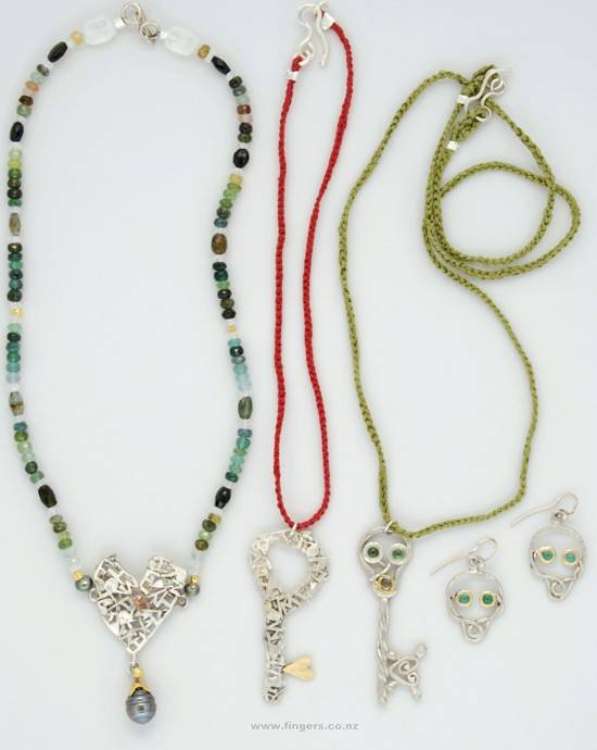Silver, copper with wishbone. Silver, copper with padlock. Silver, copper with locket